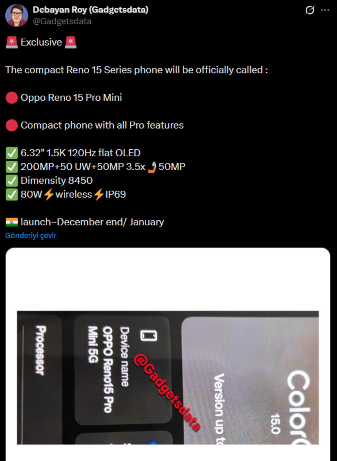 OPPO RENO15 PRO MINI’NİN SIZAN ÖZELLİKLERİ