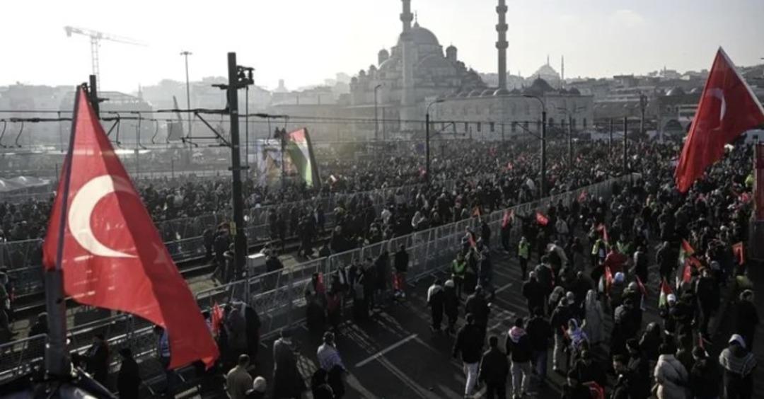 Yaklaşık 400 sivil toplum kuruluşunun (STK) katılımıyla, Galata Köprüsü‘nde “Sinmiyoruz, susmuyoruz Filistin‘i unutmuyoruz” sloganıyla düzenlenecek yürüyüş için vatandaşlar Ayasofya-i Kebir Cami-i Şerifi ile Sultanahmet, Fatih, Süleymaniye camileri ve Eminönü Yeni Cami’de sabah namazı öncesi bir araya geldi.