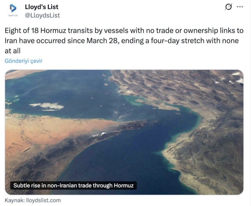 Küresel ticaret ve enerji için önemli bir rota olan Hürmüz Boğazı’ndan geçen gemi trafiği, ABD ve İsrail’in geçen ayın sonlarında İran’a yönelik saldırılarından bu yana büyük ölçüde aksadı; bu saldırılar üzerine Tahran, en az altı Körfez ülkesindeki ABD bağlantılı üslere saldırılar düzenleyerek misilleme yaptı.