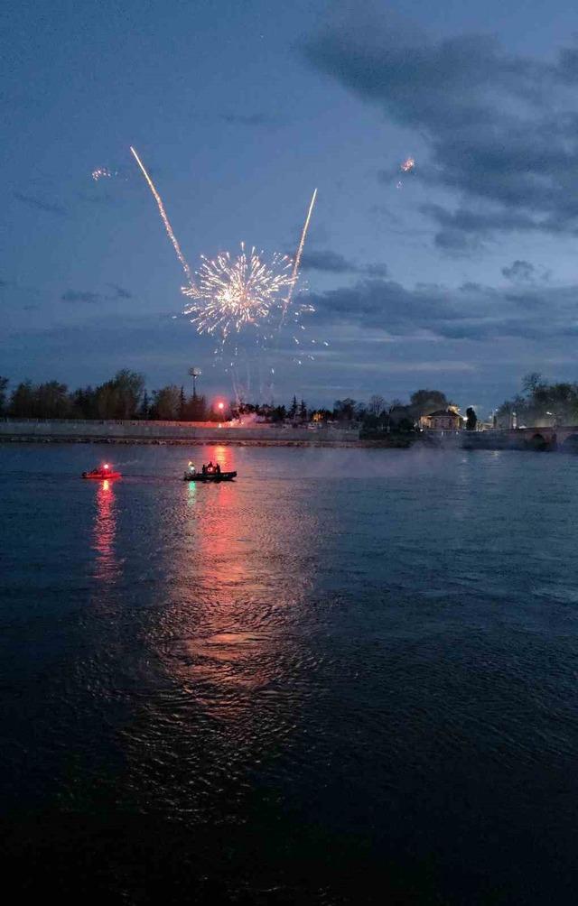 Akşam saatlerinde düzenlenen havai fişek gösterileriyle gökyüzü aydınlanırken, nehir üzerindeki görsel şölen izleyenlere unutulmaz anlar yaşattı.