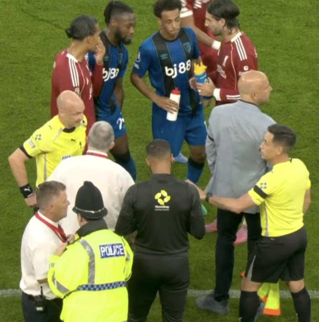 Karşılaşmanın 29. dakikasında Bournemouth’un sağ kanat oyuncusu Semenyo’ya bir Liverpool taraftarının ırkçı sözler söylenmesi üzerine hakem Anthony Taylor, maçı bir süre durdurdu.