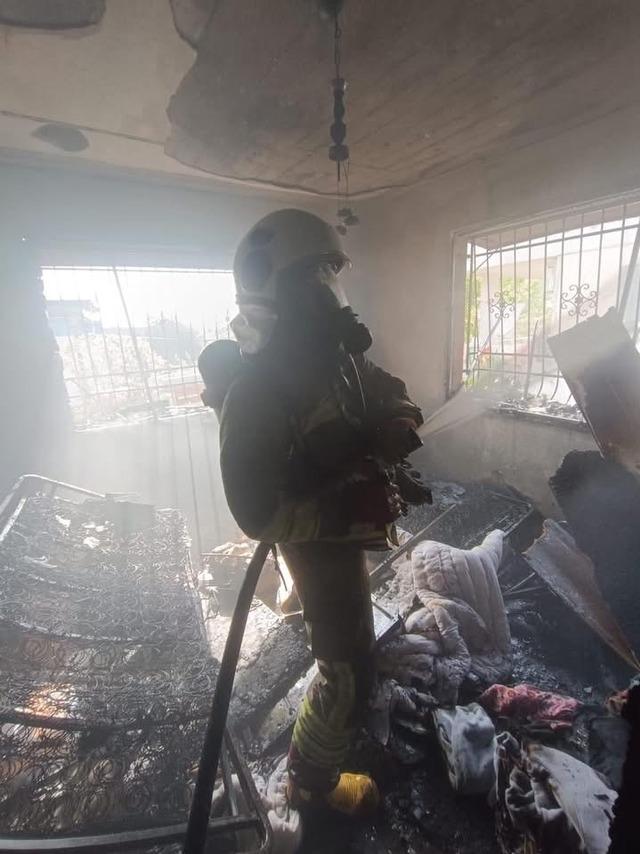 Hatay’da alevlere teslim olan apartman dairesindeki yangın, diğer evlere sıçramadan kontrol altına alındı.