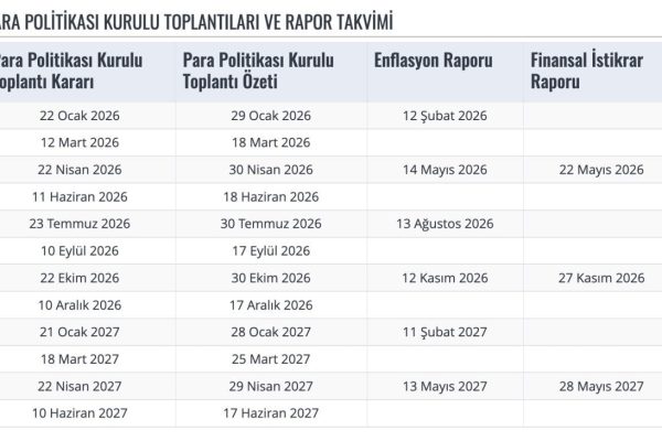 Türkiye Cumhuriyet Merkez Bankası (TCMB), 2026 yılına ait Para Politikası Kurulu (PPK) toplantıları ve veri/rapor…